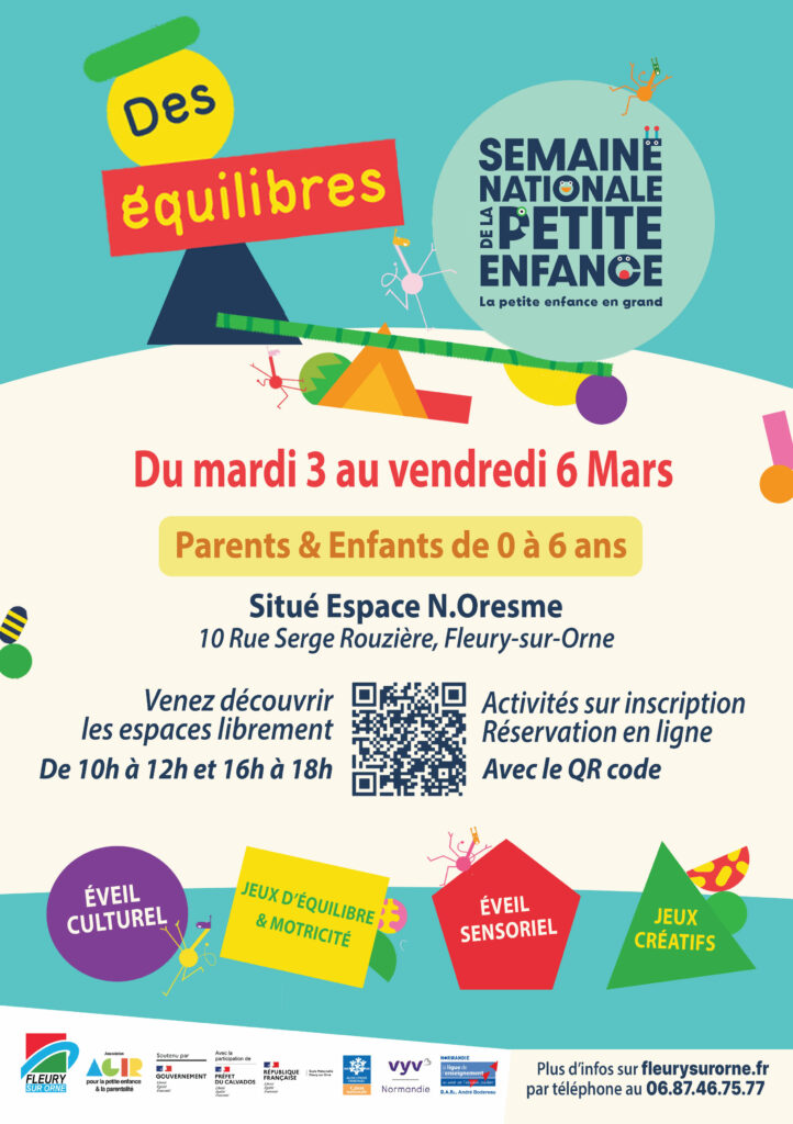 Du mardi 3 au vendredi 6 mars 2026, la Ville de Fleury-sur-Orne se mobilise pour célébrer la Semaine Nationale de la Petite Enfance ! Pendant quatre jours, les parents et les enfants de 0 à 6 ans sont invités à vivre une parenthèse joyeuse et enrichissante autour du thème « Des équilibres ». Une belle occasion de partager des instants de découverte, de jeu et de complicité dans un environnement chaleureux, spécialement pensé pour les tout-petits.